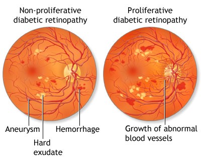 Diabetic retinopathy is a main cause of blindness in Americans 20 to 74 years old. People with type 1 or type 2 diabetes are at risk of this condition.