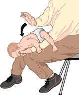 Continue alternating five back blows and five chest thrusts until the object is forced out or the baby starts to cough forcefully, cry, or breathe on his own. If he's coughing, let him try to cough up the object.