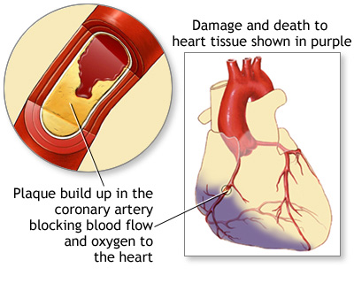 When the heart muscle has to work harder, it needs more oxygen. Symptoms of angina occur when the coronary arteries are narrowed or blocked by hardening of the arteries (atherosclerosis), or by a blood clot.