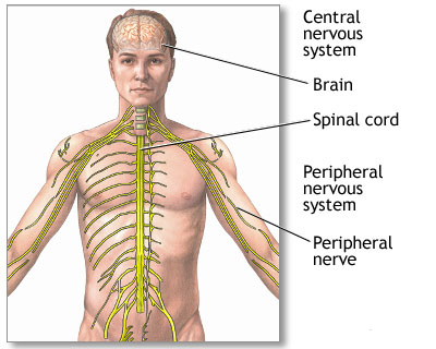 The central nervous system is comprised of the brain and spinal cord. The peripheral nervous system includes all peripheral nerves.