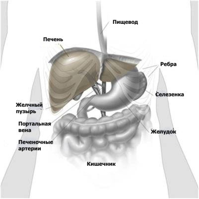 Печень является самым большим органом в человеческом организме. Она расположена в правой подреберной области живота.