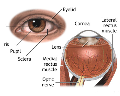 1) көздің сыртқы қабығы: аққабық (пішіні мен ширақтығын қамтамасыз ететін мөлдір емес бөлік), мөлдірқабық (жарық өтуі мен жарық сынуын қамтамасыз ететін мөлдір бөлік);
